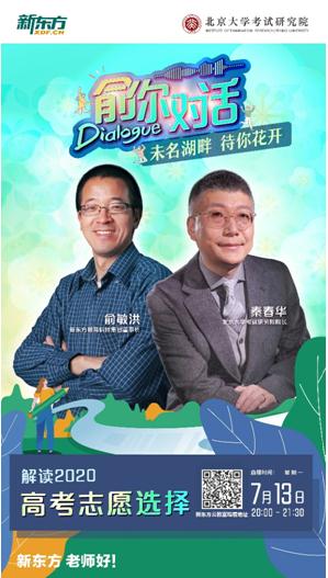為了幫助考生科學填報志愿,合理規(guī)劃未來,7月13日20:00,新東方創(chuàng)始人俞敏洪將直播對話北京大學考試研究院院長秦春華,共同解讀2020高考志愿選擇,并為即將踏入大學校門的大一新生帶來學習規(guī)劃、人生發(fā)展、方向選擇等全方面的成長干貨。