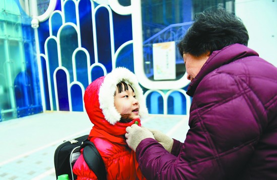 1月20日,在杭州天長(zhǎng)小學(xué),家長(zhǎng)為孩子系上風(fēng)雪帽。當(dāng)日下午,杭州市教育局發(fā)出通知:因強(qiáng)冷空氣影響,杭州將迎來(lái)多年罕見(jiàn)強(qiáng)寒潮天氣,杭州市教育局決定自1月21日起全市中小學(xué)停課,學(xué)生返校時(shí)間暫定為1月26日。