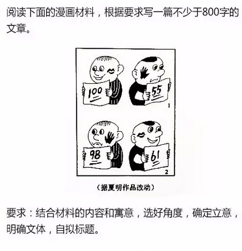 要求考生根據(jù)漫畫材料,寫一篇不少于800字的文章。結(jié)合材料的內(nèi)容和寓意,選好角度,確定立意,明確文體,自擬標(biāo)題,不要套作,不得抄襲。