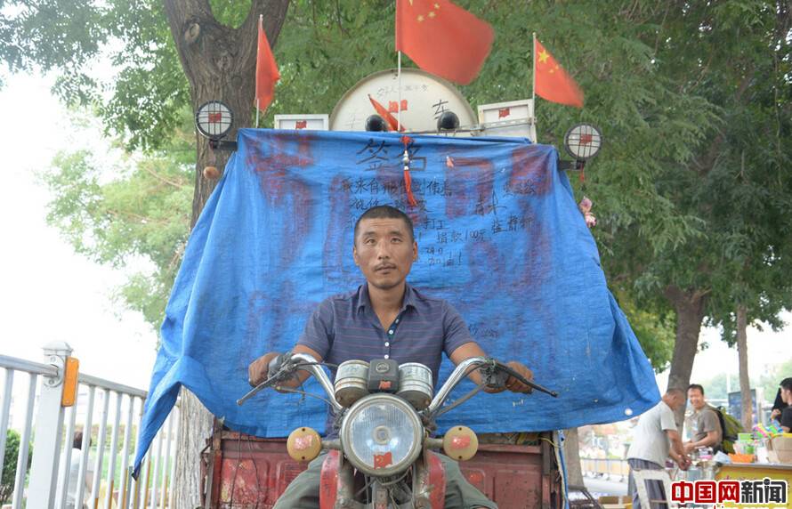山東濟(jì)南市,一輛經(jīng)過改裝的摩托三輪車停在街頭,車頂上安裝了太陽能,既能看電視又能做飯。經(jīng)過了解,小伙名叫金東賀,今年36歲,2016年5月18日從吉林延邊出發(fā),途徑遼寧、天津、北京、河北,來到山東,行程近3400公里,計(jì)劃用三年半的時(shí)間走遍全中國。金東賀出發(fā)的時(shí)候就帶了幾十元錢,一路靠撿廢舊飲料瓶換取旅途費(fèi)用。改裝這輛車的費(fèi)用不到2000元,安了太陽能,配了電視和音響,還養(yǎng)了兩只狗和自己做伴。