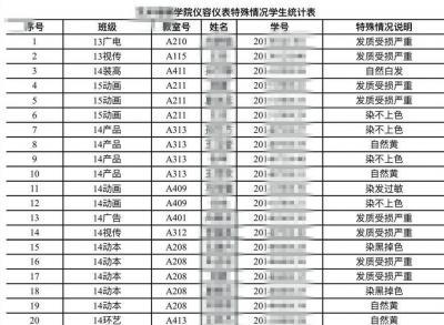 學(xué)院儀容儀表特殊情況學(xué)生統(tǒng)計(jì)表 受訪學(xué)生供圖