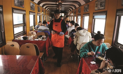 據(jù)了解,該“火車餐廳”是由一輛老式的綠皮車箱改造而成,共8節(jié)車廂。