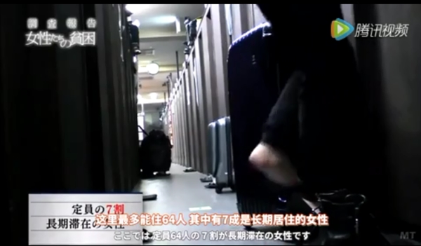 日本有一家網(wǎng)吧,近兩年有越來越多的女性長期居住,最多能住下64人,其中有7成是長期居住的女性。其中有一名19歲的女孩,已經(jīng)在這里居住了2年半,與她同居的還有14歲的妹妹和41歲的母親。從視頻來看,大約一個(gè)榻榻米大小的房間里,堆滿了她和家人的各種生活用品。
