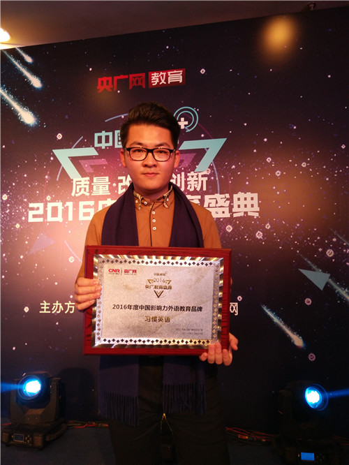 主持人:真的對遠景有一個非常好的一個憧憬。對于這次的《教育盛典》,我們都知道習慣英語獲得了2016年度中國影響力外語的教育品牌這樣一個非常高的榮譽,那您作為創(chuàng)始人您有怎樣的一個感想?