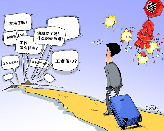 “過(guò)年時(shí)參加各種家庭聚會(huì),一個(gè)永遠(yuǎn)繞不開(kāi)的話題就是勸我早點(diǎn)找個(gè)男朋友!痹诒本┕ぷ鞯耐馄舐殕T劉潤(rùn)依今年26歲,一直沒(méi)遇到自己的“另一半”。“在北京上班時(shí)也沒(méi)覺(jué)得有什么,可放假回到老家,看到許多比自己小的同齡人都抱上了孩子,自己好像一下子成了‘異類(lèi)’!