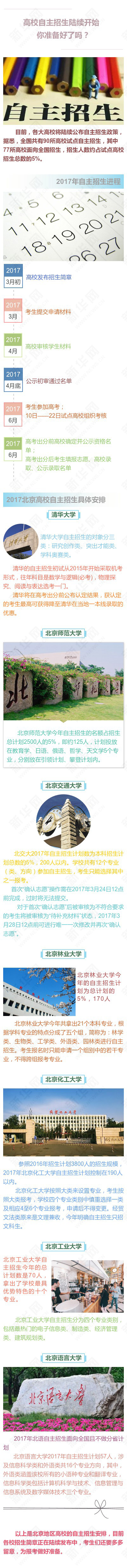 3月12日,北京交通大學和北京林業(yè)大學通過本科生招生網(wǎng)正式發(fā)布了2017年自主招生政策。從今日開始,北京有自主招生資格的各大高校將陸續(xù)公布自主招生政策。北京大學和清華大學自主招生簡章預計本月中下旬公布。
