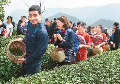 4月2日,來自白俄羅斯、芬蘭、法國、波蘭、約旦、伊朗、烏茲別克斯坦等國的30多名留學(xué)生,走進(jìn)浙江省義烏市毛店茶園學(xué)習(xí)采摘春茶,了解茶樹的生長過程和茶葉制作工藝,感受濃濃的中國文化魅力。