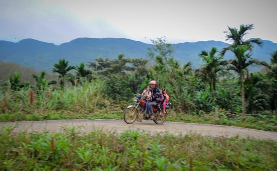 3月8日放學(xué)后,吳光明用摩托車送學(xué)生回家。早晨,家長(zhǎng)要上山割膠,來不及送孩子時(shí),學(xué)生也會(huì)自己到吳光明家里,坐兩位老師的摩托車去學(xué)校。