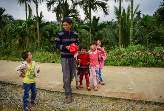 由于有些孩子的家離教學(xué)點(diǎn)較遠(yuǎn),路上還要翻山,吳光明早上常騎著摩托車接孩子們上學(xué)。而如今摩托車的引擎聲還在,騎車的人是這對(duì)父子。后來,為了方便兒子去城里聽課交流學(xué)習(xí),也為了兒子找女朋友,吳光明給吳志平買了輛小汽車。海南的夏天來得比較早,4月初已經(jīng)時(shí)常是氣溫37攝氏度的艷陽天。中午吃過午飯,吳志平會(huì)開著新車載著孩子們從家里回學(xué)校。
