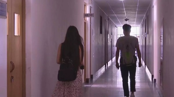 發(fā)現(xiàn)白衣男形跡可疑,高老師迅速組織幾個學(xué)生上樓追,這也展開了一場貓捉老鼠的游戲,從一樓直到四樓,幾人不露聲色,悄悄跟隨,最終在白衣男回到一樓大廳門口的時候,高老師第一個沖了上去。