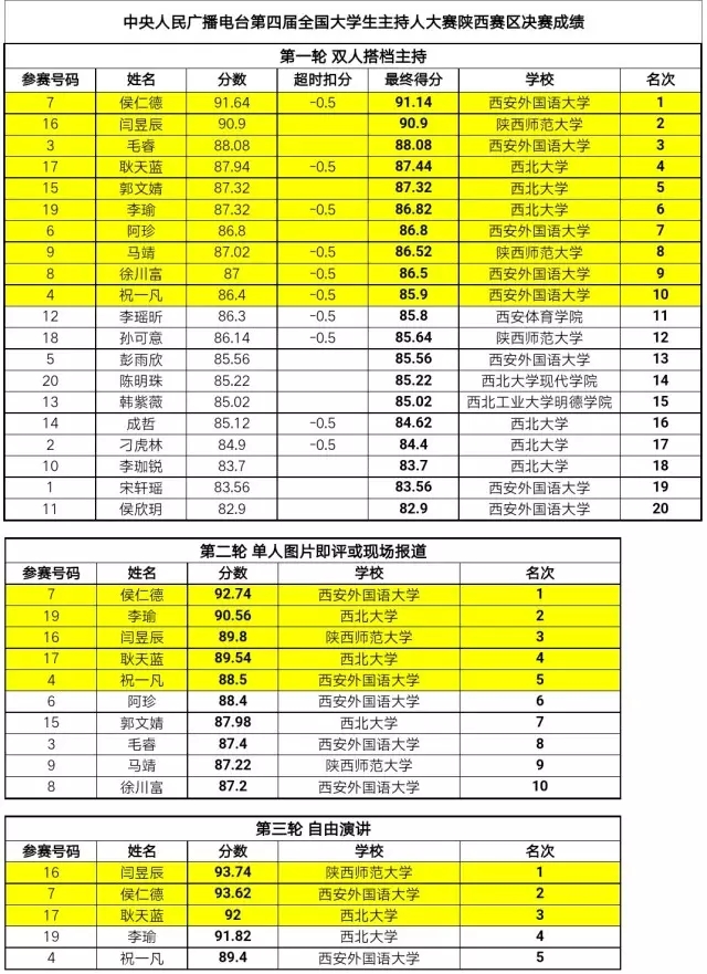 網(wǎng)羅青春好聲音,開啟人生新頻率。2017年6月15日晚,中央人民廣播電臺第四屆全國大學(xué)生主持人大賽陜西賽區(qū)決賽在西安外國語大學(xué)落下帷幕,陜西賽區(qū)十強選手出爐,前五名選手成功晉級全國復(fù)賽。