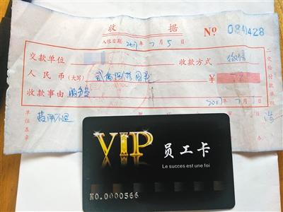 小王向記者展示收費收據(jù)和她按照中介機構(gòu)要求辦的員工卡