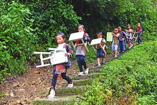 多年以來,由于生源少和地理位置偏遠(yuǎn)等原因,久甲小學(xué)幾十年來使用的課桌凳已經(jīng)很陳舊,想得到一批新課桌一直是這所“微小學(xué)”師生的夢想。當(dāng)?shù)赜嘘P(guān)部門得知久甲小學(xué)師生的想法后,號召單位干部職工通過“眾籌”的方式購買了一批新課桌凳,在今年新學(xué)期開學(xué)第一周送到大山里,圓了久甲小學(xué)師生多年的夢想。