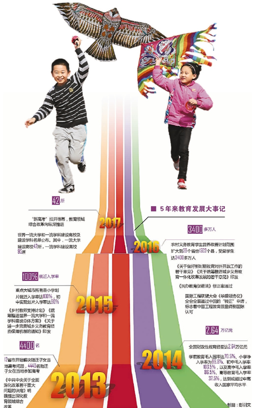 5年來(lái),中國(guó)教育優(yōu)先發(fā)展,教育質(zhì)量不斷提升,教育公平受益面不斷擴(kuò)大,中國(guó)正努力用更好的教育回應(yīng)人民的熱切期盼。