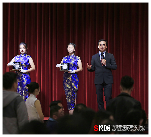 為傳遞愛心,幫助家庭經(jīng)濟困難的同學順利完成學業(yè),11月18日晚,鄭州大學西亞斯國際學院在圖書館一樓宴會廳舉行了以“情暖西亞斯”為主題的慈善晚宴。中外嘉賓和西亞斯國際學院理事長陳肖純,黨委書記費鶴祥,校長陳思坤,常務副校長董企銘,校長助理孫汝建等出席,各院部領導及相關部門負責人、師生代表參加了晚宴。