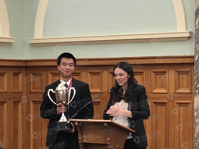 Jacinda Ardern當天宣布總理卓越學術獎學金的獲得者是Andrew Tang。隨后,Andrew Tang發(fā)表了獲獎感言:“很榮幸獲得該大獎,首先,非常感謝我的父母,感謝你們無私的愛和對我的支持。其次,感謝我的母校Scots College,謝謝你提供這么好的教育!