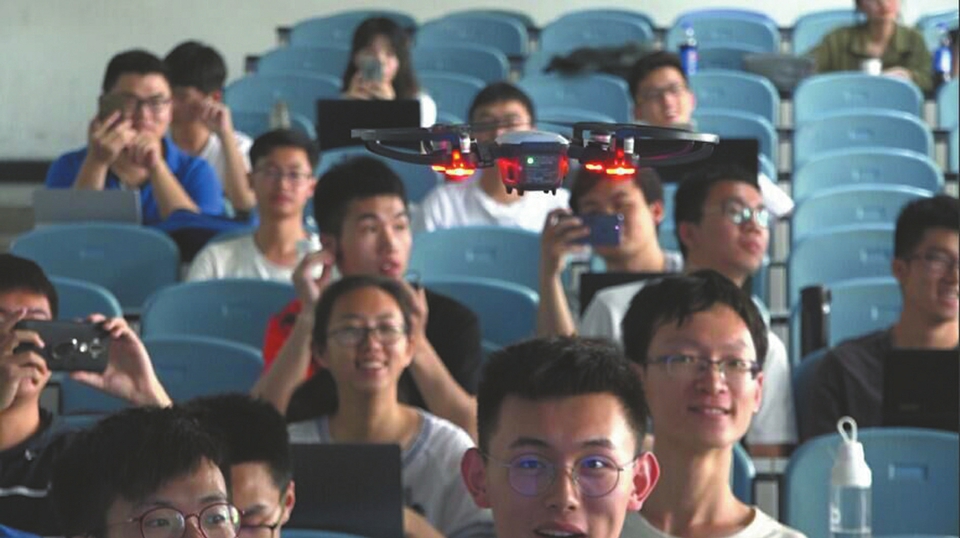 魏驍勇研發(fā)的人臉識(shí)別無(wú)人機(jī)出現(xiàn)在川大課堂。