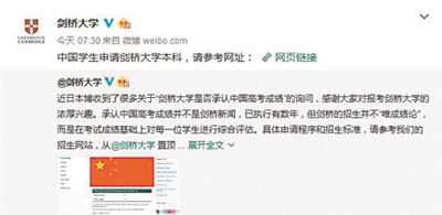 2018年10月,伯明翰大學(xué)官網(wǎng)宣布“自2019年起,中國(guó)學(xué)生可以直接用高考成績(jī)申請(qǐng)伯明翰大學(xué)本科課程。”這條消息當(dāng)時(shí)引起了極大關(guān)注,因?yàn)椴骱泊髮W(xué)是英國(guó)精英大學(xué)聯(lián)盟“羅素集團(tuán)”成員中第一所正式對(duì)外官宣認(rèn)可中國(guó)高考成績(jī)的大學(xué)。隨后不少院校也對(duì)外發(fā)布了接受中國(guó)高考生的錄取標(biāo)準(zhǔn)。最近,媒體又紛紛報(bào)道,備受矚目的劍橋大學(xué)也宣布接受中國(guó)高考成績(jī),想必這個(gè)消息一定會(huì)讓不少今年的高考生和家長(zhǎng)興奮不已,不過(guò),不要高興得太早,因?yàn)槌烁呖汲煽?jī)的要求外,申請(qǐng)者還需滿足其他一系列要求,包括語(yǔ)言和學(xué)術(shù)方面。但在3月25日,劍橋大學(xué)通過(guò)官方微博發(fā)布消息稱,承認(rèn)中國(guó)高考成績(jī)并不是劍橋新聞,已執(zhí)行數(shù)年,但劍橋的招生并不“唯成績(jī)論”,而是在考試成績(jī)基礎(chǔ)上對(duì)每一位學(xué)生進(jìn)行綜合評(píng)估。具體申請(qǐng)程序和招生標(biāo)準(zhǔn)可參考學(xué)校招生網(wǎng)站。文、圖:廣州日?qǐng)?bào)全媒體記者 李瓊