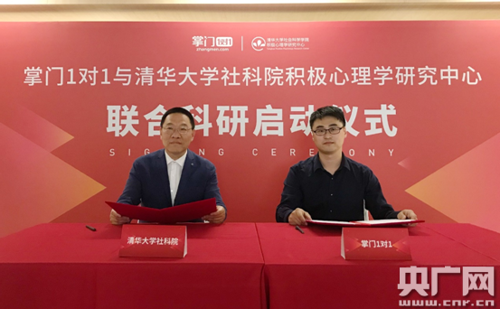 央廣網(wǎng)北京6月11日消息(記者安紅麗)6月10日,掌門1對1與清華大學(xué)社科院積極心理學(xué)研究中心(以下簡稱“清華大學(xué)心理學(xué)中心”)聯(lián)合科研啟動儀式在清華大學(xué)幸?萍紝嶒炇遗e行。今后,清華大學(xué)心理學(xué)中心將為掌門在線素質(zhì)教育研究院提供堅實的學(xué)術(shù)支撐。從積極心理學(xué)課題研究,到教師聯(lián)合培養(yǎng),從精彩的積極心理學(xué)課堂到深入清華校園的實踐活動,全國青少年將有機(jī)會感受具有“清華大學(xué)心理學(xué)中心”基因的積極心理學(xué)課程內(nèi)容。這次科研合作也標(biāo)志著掌門1對1將在高校學(xué)術(shù)資源的支持下,讓國際頂尖積極心理學(xué)理論與方法融入K12教學(xué)領(lǐng)域,建立起符合兒童、青少年幸福成長需求的更為科學(xué)的教學(xué)體系。