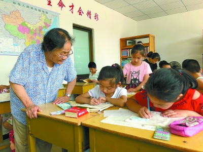 嚴(yán)敏文正在為孩子們講解習(xí)題。朱松梅攝