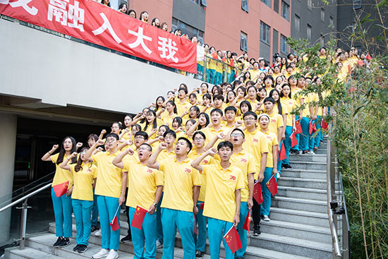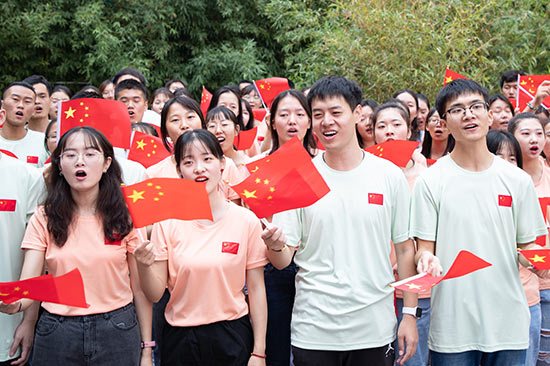 人民網(wǎng)訊 29日,象征著大樹(shù)和種子的北京林業(yè)大學(xué)校園下沉廣場(chǎng),已被布置成歡樂(lè)的海洋,身著淡綠、淺藍(lán)、大紅、鮮黃等各色文化衫的大學(xué)生排著整齊的隊(duì)列齊聚于此!段液臀业淖鎳(guó)》《大中國(guó)》《歌唱祖國(guó)》等歌聲響徹了北京林業(yè)大學(xué)這所全國(guó)最高綠色學(xué)府。2000多名師生相約相聚,用唱歌、舞蹈、演奏、朗誦、宣誓等多種方式,向祖國(guó)表達(dá)心中的祝福。(白云 李佳)