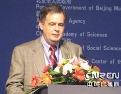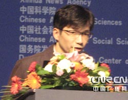北京市科技委員會主任馬林做《科技奧運》的報告