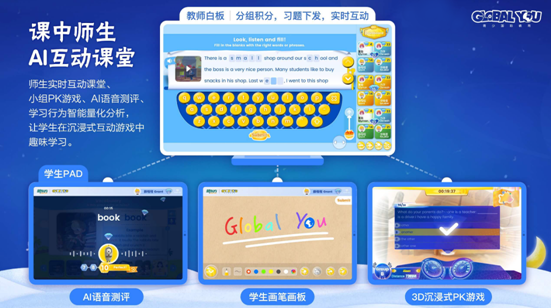 其中新東方國際教育將重點展示Global You青少國際教育的互動體驗式課堂,包括線上師生、生生互動答題,線下線上課堂學習效果數(shù)據(jù)化實時采集,課后智能測評生成個性化能力模型,基于學習軌跡及大數(shù)據(jù)分析為學生提供英語能力提升個性化解決方案等。