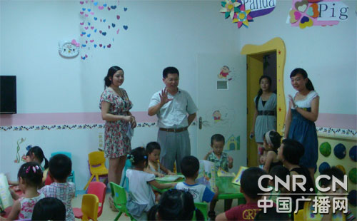 分宜縣心心幼兒園園長朱玥瑤(右)接受本網(wǎng)記者專訪 記者:全國的各位聽眾和網(wǎng)友們,您們好!我是中國廣播網(wǎng)教育頻道的記者榮國軍。我來到了江西分宜縣最大的一所民辦幼兒園——心心幼兒園進(jìn)行采訪。坐在我身邊的是園長朱玥瑤,現(xiàn)在請她給我們介紹一下心心幼兒園的情況。 朱玥瑤:尊敬的全國各位聽眾和網(wǎng)友們,您們好!我是分宜心心幼兒園園長朱玥瑤,首先謹(jǐn)讓我向所有關(guān)心、支持我園發(fā)展的各級領(lǐng)導(dǎo)、社會(huì)各界人士表示衷心的感謝和崇高的敬意! 心心幼兒園于2010年8月開園,是一所全日制民營幼兒園,功能和配套設(shè)施達(dá)到省級A類幼兒園標(biāo)準(zhǔn),總占地面積為7.89畝,總建筑面積為3990平米。戶外活動(dòng)場地面積為1600平米,綠化面積約為900平米,可提供500名學(xué)前兒童入學(xué)需求。 開園時(shí),我園的學(xué)生人數(shù)為265人,目前為414名,年增長率達(dá)到56%,F(xiàn)有班級14個(gè),其中大班4個(gè),中班4個(gè),小班4個(gè),托班1個(gè)。 辦園一年多以來,在縣教委及上級各部門的正確領(lǐng)導(dǎo)和關(guān)心指導(dǎo)下,在廣大幼兒家長及社會(huì)各界的大力支持下,幼兒園的各項(xiàng)工作取得了長足的發(fā)展與進(jìn)步,正邁上了一個(gè)良性發(fā)展階段。