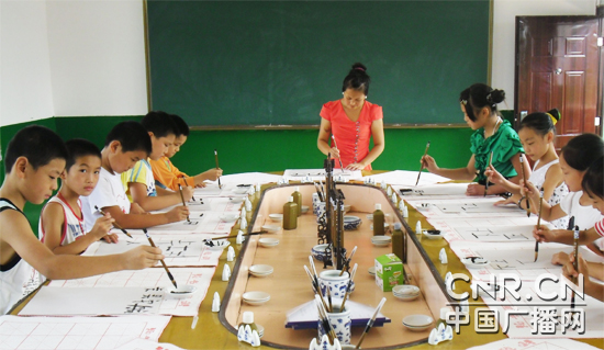 江西進(jìn)賢縣文港鎮(zhèn)中心小學(xué)校長鄧國星 記者:各位網(wǎng)友們,您們好!我是中國廣播網(wǎng)教育頻道的記者榮國軍。我來到了江西省進(jìn)賢縣文港鎮(zhèn)中心小學(xué)進(jìn)行采訪,F(xiàn)在請鄧校長給我們介紹一下學(xué)校的情況。 鄧國星:尊敬網(wǎng)友們,您們好!首先,謹(jǐn)讓我向所有關(guān)心、支持我校發(fā)展的各級領(lǐng)導(dǎo)、社會各界人士表示衷心的感謝和崇高的敬意! 文港鎮(zhèn)是北宋著名詞人、政治家晏殊的故鄉(xiāng),是聞名遐邇的“毛筆之鄉(xiāng)”,有江南第一大皮毛市場,被中國輕工業(yè)聯(lián)合會命名為“華夏筆都”。 全鎮(zhèn)有全日制小學(xué)13所,其中完小10所,初級小學(xué)3所,鎮(zhèn)村農(nóng)民文化技術(shù)學(xué)校十二所,全鎮(zhèn)約四個村民小組有一所學(xué)校。五年級小學(xué)生到校不超過二華里。學(xué)校布局合理,有利于學(xué)生入學(xué),有利于普及九年義務(wù)教育。 全鎮(zhèn)在校小學(xué)生3900多人,共有96個教學(xué)班,教職工250人,其中黨員33人,成立了教育黨總支。全鎮(zhèn)小學(xué)現(xiàn)有校舍面積12618平方米,占地面積56039平方米,生均達(dá)到3.32平方米。 音體美器材方面,全鎮(zhèn)中小學(xué)分別按2類或3類進(jìn)行了配備,音體美器材在教學(xué)中發(fā)揮了極大的教學(xué)效果,讓藝術(shù)熏陶了師生,在實踐中鍛煉了師生。 記者:在文港鎮(zhèn)中心小學(xué)采訪,我能感受到全體教職工精神面貌奮發(fā)向上,其中印象最深的是 “做強(qiáng)做優(yōu)”的辦學(xué)之路,獨具有文港特色。請問它的內(nèi)涵是什么? 鄧國星:改革開放以來,文港的經(jīng)濟(jì)發(fā)生了翻天覆地的變化。在這喜人又逼人的大好形勢下,文港的教育怎么辦?校園文化建設(shè)怎么抓出成效?帶著這些問題,學(xué)校進(jìn)行反思,進(jìn)行探討。