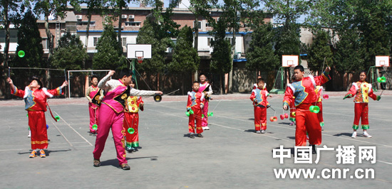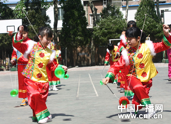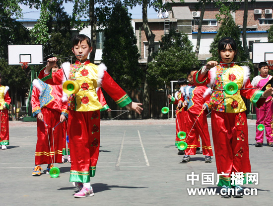 電廠路小學(xué)在深刻領(lǐng)會(huì)了“優(yōu)質(zhì)、均衡”的實(shí)質(zhì),結(jié)合十六字培養(yǎng)方針,在廣泛調(diào)查、分析的基礎(chǔ)上,將民族鼓樂(lè)、空竹確定為辦學(xué)特色(抖空竹和民族鼓樂(lè)都屬于2006年5月國(guó)務(wù)院批準(zhǔn)文化部確定的第一批國(guó)家級(jí)非物質(zhì)文化遺產(chǎn)名錄),并得到了教委的大力扶持和專(zhuān)家們的熱情幫助。