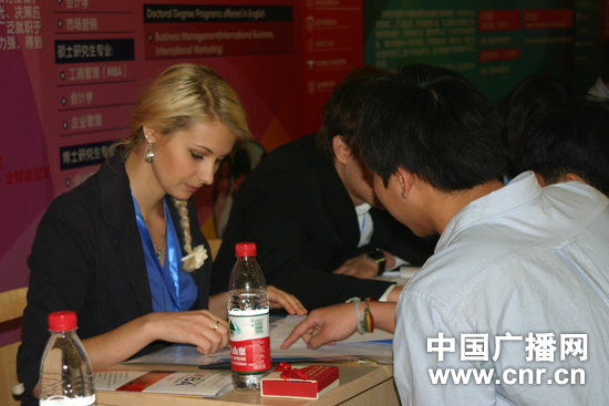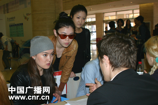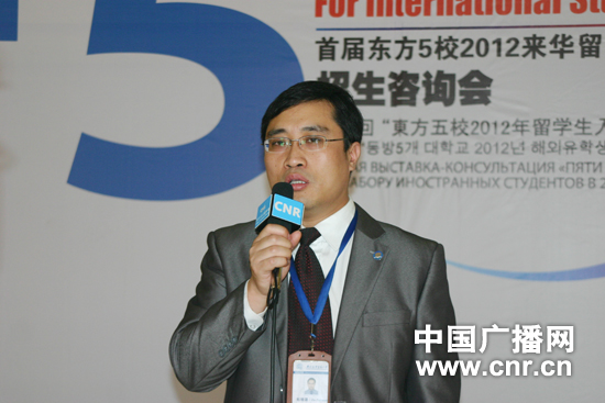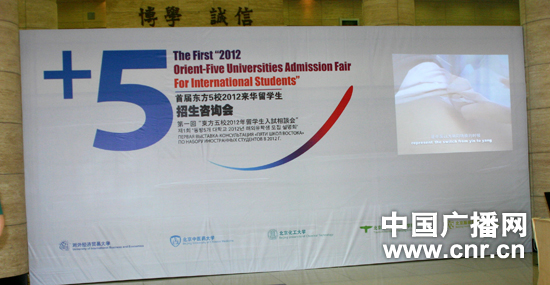 首屆東方5校2012來(lái)華留學(xué)生招生咨詢會(huì)現(xiàn)場(chǎng) 中廣網(wǎng)北京5月13日消息 5月12日,首屆東方五校來(lái)華留學(xué)生招生咨詢會(huì)在對(duì)外經(jīng)貿(mào)大學(xué)校內(nèi)舉行,咨詢會(huì)由對(duì)外經(jīng)濟(jì)貿(mào)易大學(xué)國(guó)際學(xué)院主辦,對(duì)外經(jīng)濟(jì)貿(mào)易大學(xué)、北京中醫(yī)藥大學(xué)、北京化工大學(xué)、北京聯(lián)合大學(xué)旅游學(xué)院、北京服裝學(xué)院5所高校參加,其中對(duì)外經(jīng)濟(jì)貿(mào)易大學(xué)12所學(xué)院參加了此次咨詢會(huì)。
