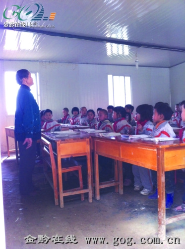 學(xué)生在板房里上課