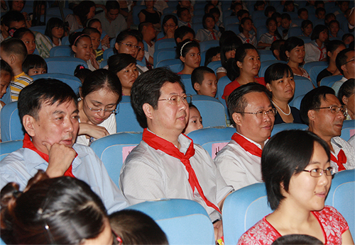 舞臺(tái)上,來自海南特殊教育學(xué)校的林冰小朋友雖然雙眼失明,但是卻用歌聲傳遞了她對(duì)所有小朋友的六一祝福。海南省委常委、組織部部長(zhǎng)、省教育工委書記樓陽(yáng)生,省人大常委會(huì)副主任、省總工會(huì)主席符興,副省長(zhǎng)林方略,省政協(xié)副主席陳莉在省教育廳有關(guān)領(lǐng)導(dǎo)的陪同下觀看演出。演出最后,省領(lǐng)導(dǎo)和演員們共同登臺(tái),合照留念。小演員們也為所有小朋友送上了祝福。