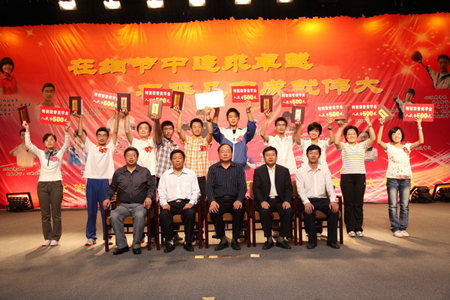 在歡快的音樂聲中,校領(lǐng)導(dǎo)張文茂、王建鵬、康新江、王建勇分別為“十大杰出學(xué)星”、“優(yōu)秀學(xué)星”頒發(fā)了證書、獎品和獎金。