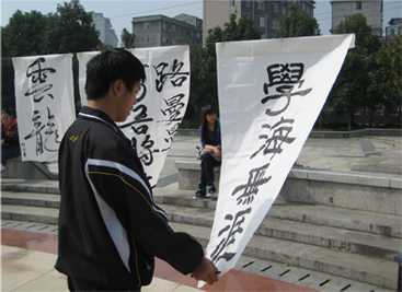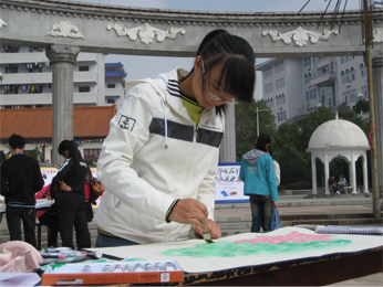 中廣網(wǎng)北京10月25日消息 (通訊員彭甜 邵曉嬡)為了營造濃厚的校園文化氛圍,充分展現(xiàn)中國書畫藝術(shù)魅力,10月23日上午,湖北民族學(xué)院文學(xué)與傳媒學(xué)院、經(jīng)濟(jì)與管理學(xué)院、生物科學(xué)與技術(shù)學(xué)院、法學(xué)院四院的宣傳部聯(lián)合該校社團(tuán)蘭亭書苑在大學(xué)生廣場圓形舞池舉行現(xiàn)場書畫大賽。