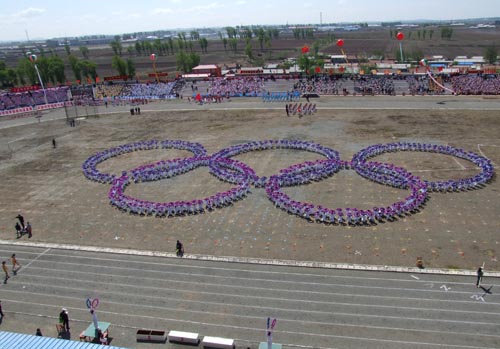 學生們組成奧林匹克五環(huán)圖案
