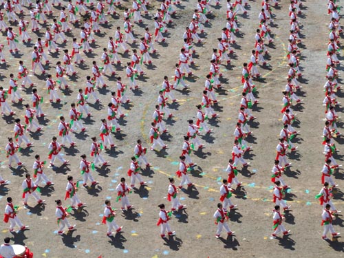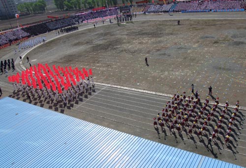 開幕式上,實驗小學和站前小學組織了千余人參與的大型團體操表演。