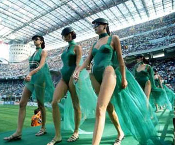 1990年意大利世界杯:經(jīng)典之作 難以忘懷 1990年6月8日,在米蘭圣西羅球場意大利人上演了迄今世界杯歷史上最為成功、最為經(jīng)典的一場開幕式表演,即使經(jīng)過多年還依然令人回味無窮。美女、靚裝、酥胸,一波波高潮不斷沖擊著球迷們的視覺,這是一次成功的將現(xiàn)代感和藝術(shù)魅力完美結(jié)合的開幕式表演。意大利人傾其所能,將具有本國特色的文化藝術(shù)作品直接呈現(xiàn)在全世界人民面前,令人叫絕的就是他們將眾多元素結(jié)合的天衣無縫,恰到好處。 除視覺享受外,本屆世界杯開幕式上那首《意大利之夏》也讓球迷們的聽覺得到愉悅。即使你不清楚歌者演唱的內(nèi)容是什么,但其演繹的方式以及歌曲旋律還是深深得刻在了你的腦海之中。只要聽到那首歌曲,你就會想到1990年的意大利;只要聽到那首歌曲,你就會想起世界杯。