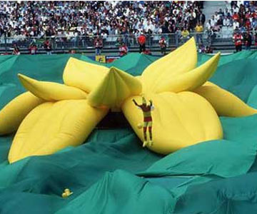 1998法國世界杯:浪漫游戲 簡短精悍 1998年6月10日,法國法蘭西大球場奉獻了一場簡單但有趣、短暫卻浪漫的開幕式。法國世界杯的開幕式全長僅有25分鐘,當時如此簡單的開幕式,還一度讓人無法接受。但每個人其實還是很佩服法國藝術(shù)家們能在如此短暫的時間里,用簡單和具有感染力的手法為世界獻上了那么多充滿想象力的創(chuàng)意。 開幕式上的法國人穿著夸張變形的童趣服裝,色彩鮮艷但沒有壓迫感。在他們的嬉戲玩樂中把場地中藏在花芯里的巨型充氣足球升起,在空中散開,釋放出無數(shù)個彩色氣球自由飄散。 1998年法國世界杯主題曲 《Allez! Ola! Ole! 》 演唱者:尤索·恩多(Youssou N'Dour )& 阿克塞拉·瑞德(Axelle Red) “我踢球你介意嗎”是首輕快的歌曲,帶著濃烈的熱帶情調(diào)和歡快的吟唱風格。演唱者都不是法國人,歌曲沒有明顯的法國特點,可能也正應(yīng)和了世界杯融合交流的主題,并符合法國人喜好出人意料的性格。但很多人認為并不好聽。 |