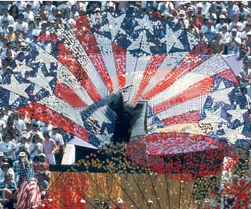 1994美國世界杯:榮耀之地 娛樂足球 1994年6月17日,在芝加哥士兵體育場美國人用獨有的方式為全世界獻上了一場他們自認為十分成功的開幕式表演。在歐洲人眼中,根本不懂足球的美國人打造的這場開幕式是“好萊塢風格”的,盡管熱鬧但無法給人留下深刻印象。不過美國人在描述這次開幕式時,可謂是“美詞如云”,壯觀、華麗、神話般的音樂和層出不窮的驚喜,他們甚至使用了美國創(chuàng)造足球歷史這樣帶有主觀性的詞語來記錄開幕式。 1994年開幕式當時還不被亞洲人民熟識的大牌明星也群星閃耀,但習慣了折騰大場面的美國人卻太不講究細節(jié),整個開幕式缺乏舞臺感,這讓其中的參與者的倉惶忙亂都直接暴露在大眾面前,多少也讓這場“世界秀”打了折扣。不過,美國人想表達的“美國歡迎世界,世界杯連接世界”的理念倒是在開幕式上得到充分體現(xiàn)。