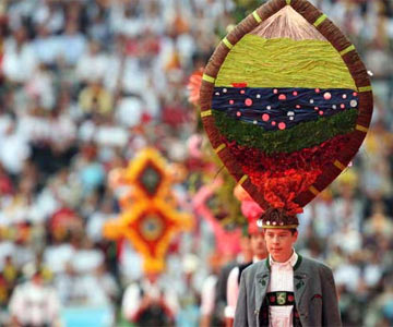 2006年德國世界杯:鋼鐵德國展效率風采 與德國人的辦事效率一樣,德國世界杯的開幕式簡短而不輸場面。德國人不想讓開幕式搶了足球的風頭,他們清楚的知道足球才是主角,因此開幕式前后只有33分鐘。但氣氛與場面絲毫不讓其他幾屆,文藝表演既有世界的,也有德國的。開幕式的高潮無疑是109名冠軍英雄(加上參加決賽者為170人)的登場,盡管馬拉多納遺憾缺席,但我們還是看到了球王貝利、德國名帥福格茨,法國鐵衛(wèi)德塞利……。 隨著德國總統(tǒng)克勒宣布2006世界杯開幕,歡快簡潔的德國世界杯開幕式在德國歌手格羅內(nèi)梅耶演唱的本屆主題曲《慶祝這一天》(celebrate the day)的歌聲中結(jié)束,而這也意味著將在未來一個月上演的跌宕起伏的足球大戲正式拉開大幕。