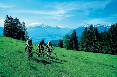 瑞士是一個(gè)理想的進(jìn)行自行車游的國(guó)家。為發(fā)展自行車游,瑞士近年來(lái)修建了完善的自行車公路網(wǎng)。