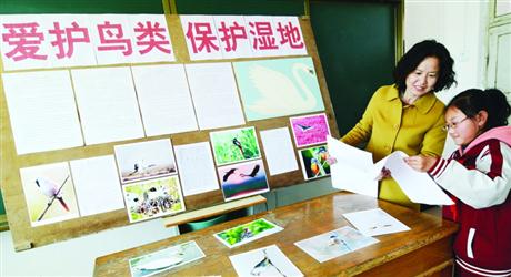 眼下正值成群候鳥(niǎo)遷徙的時(shí)節(jié),鳥(niǎo)兒們飛越千山萬(wàn)水,渤海灣濕地成為遷徙鳥(niǎo)類(lèi)的“中轉(zhuǎn)站”和“加油站”。凌海市八千鄉(xiāng)南八千村小學(xué)與駐地邊防派出所愛(ài)鳥(niǎo)護(hù)鳥(niǎo)小分隊(duì)一起開(kāi)展了“同在藍(lán)天下、共享一個(gè)家”愛(ài)鳥(niǎo)護(hù)鳥(niǎo)主題周活動(dòng)。一周時(shí)間里,學(xué)校開(kāi)展了濕地鳥(niǎo)類(lèi)知識(shí)競(jìng)賽、編輯了愛(ài)鳥(niǎo)護(hù)鳥(niǎo)主題板報(bào),還請(qǐng)西八千邊防派出所護(hù)鳥(niǎo)小分隊(duì)叔叔介紹文須雀在濕地停留休憩與繁衍生息情況,活動(dòng)中同學(xué)們紛紛爭(zhēng)當(dāng)“愛(ài)鳥(niǎo)形象大使”,保護(hù)大自然,保護(hù)濕地,和野生鳥(niǎo)類(lèi)共享一個(gè)家。