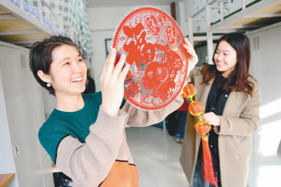 1月6日,沈陽(yáng)高校大學(xué)生迎來(lái)寒假生活。當(dāng)天,沈陽(yáng)農(nóng)業(yè)大學(xué)食品學(xué)院舉行“非遺·寒假”主題活動(dòng),來(lái)自新疆的大一新生夏扣娜·阿曼太在寢室和同學(xué)們學(xué)習(xí)剪紙。今年寒假,沈陽(yáng)各高校開(kāi)展多項(xiàng)活動(dòng),讓留校學(xué)生的寒假充實(shí)多彩。