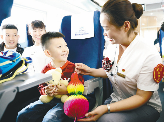 端午節(jié)小長假,“奔馳動車‘粽’是情,匠心服務(wù)伴您行”列車文化活動在中鐵沈陽局集團公司沈陽客運段全國青年文明號G218次列車上舉行。你猜燈謎,我送禮品,濃濃的端午文化飄散在車廂里。(李浩、黃偉彬攝)