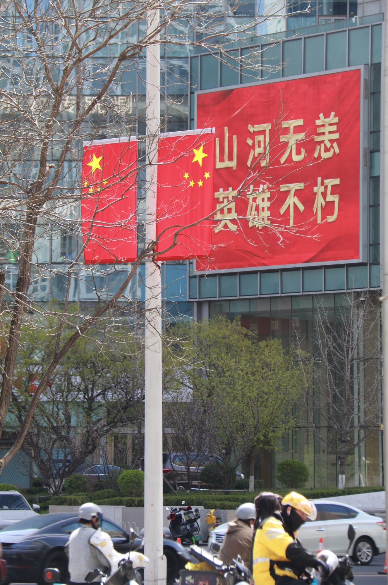 4月21日上午,沈陽青年大街沿線,紅色成為主色調(央廣網(wǎng)記者 李子平 攝)