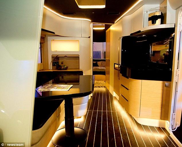 據(jù)英國(guó)《每日郵報(bào)》10月14日?qǐng)?bào)道,英國(guó)伯明翰房車展上展出一輛超未來房車,這款房車是由一款iPHONE APP應(yīng)用軟件控制運(yùn)行的。這款房車設(shè)計(jì)的看起來就像是一艘豪華游艇,通過按動(dòng)按鈕,可以出現(xiàn)一個(gè)巨型的電影屏幕。這款房車長(zhǎng)9米,寬2.5米,通過高智能App軟件調(diào)解燈光、聲音和溫度。(網(wǎng)頁截圖)