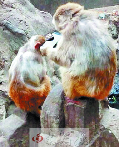 動(dòng)物園游玩將手機(jī)掉猴池 “大圣”自拍玩上癮(圖)