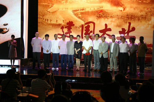 《建國大業(yè)》導(dǎo)演韓三平、黃建新及張國立、唐國強、許晴等主創(chuàng)人員在儀式現(xiàn)場