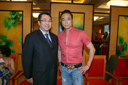 北京嘉里中心大酒店總經(jīng)理王德賢先生與明星吳鎮(zhèn)宇合影